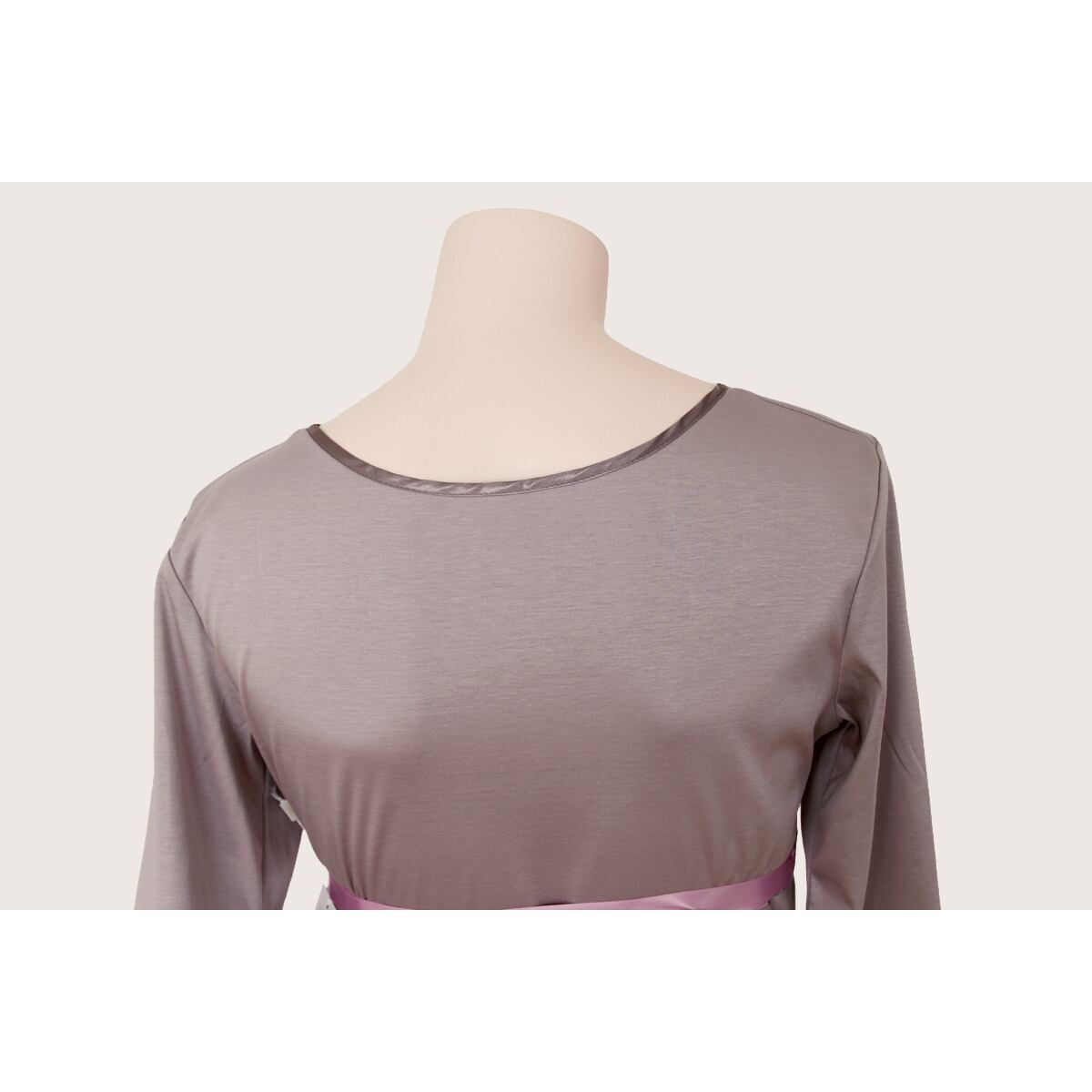カメリアブラジャーで作り上げた胸元をしっかり包み込むため胸元のカットラインを深く重なるように、ウエストリボンをアンダーバストに引き上げました。より一層美しい胸元のラインが出来ます。斜めのカッティングで足捌きを解消しました。キャミソール部分は贅沢な一枚仕立てなので、足の擦れはありません。パイピングを一度も切らずに這わせているので、お洗濯後の型くずれが少ないです。